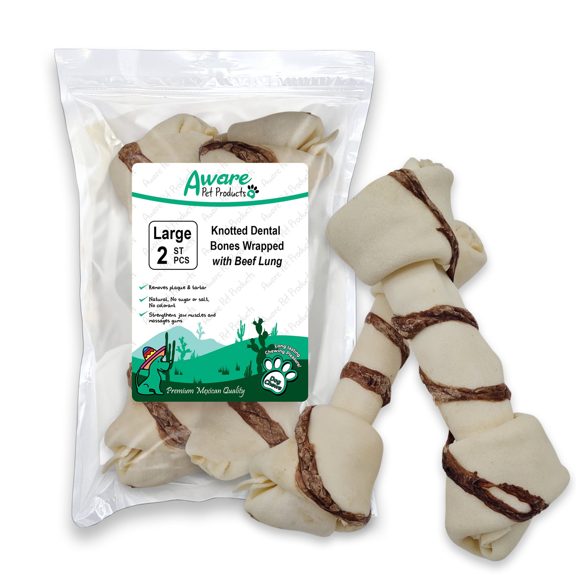Handgeknoopt runderhuid bot dat is omwikkeld met runderlong. Hij bevat veel onderhuids bindweefsel, een gezonde aanvulling op de voeding. De long geeft het bot een lekkere smaak die je hond blij zal maken.