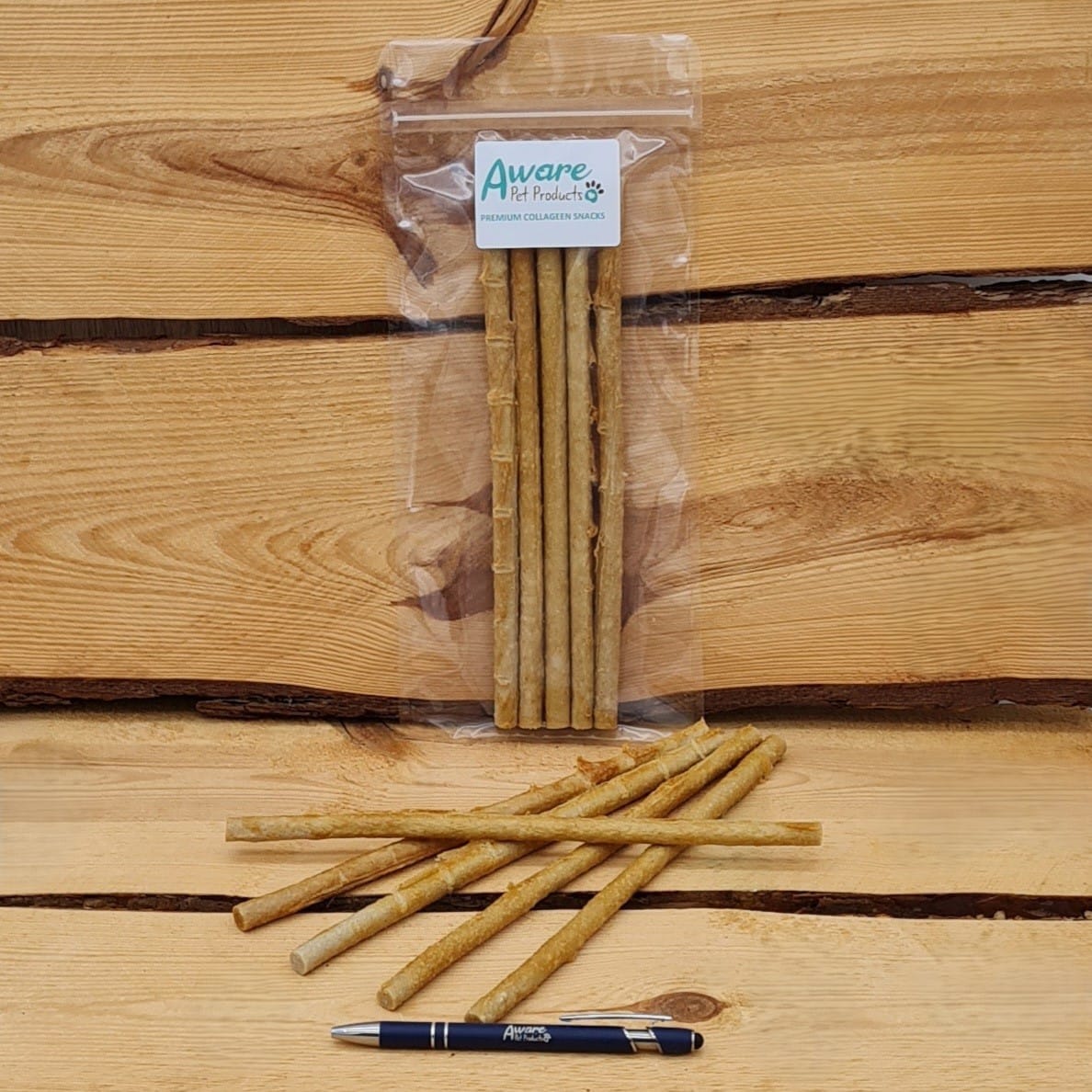 Gun je hond het genot van kauwen en de voordelen van collageen met de Collageen Stick met Kip van Aware Pet Products. Bestel vandaag nog en zie hoe je huisdier elke hap met plezier opslokt!