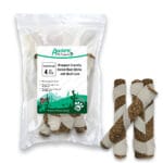 Runderhuid bevat veel onderhuids bindweefsel. Zodra een hond hierop begint te kauwen, komt er een stof vrij die tandplak verwijdert en tandsteen tegengaat. In de Munchy stick zelf zit al runderhuid en we hebben er nog een extra lapje omheen gewikkeld. Zo is het een ultiem kauwproduct waar je hond lang zoet mee zal zijn.