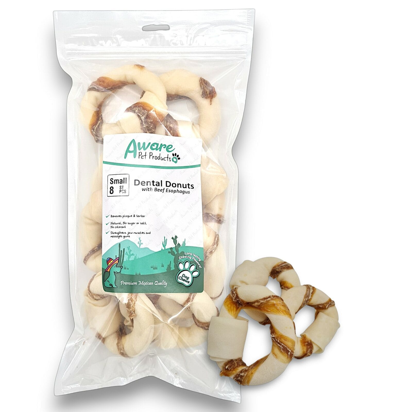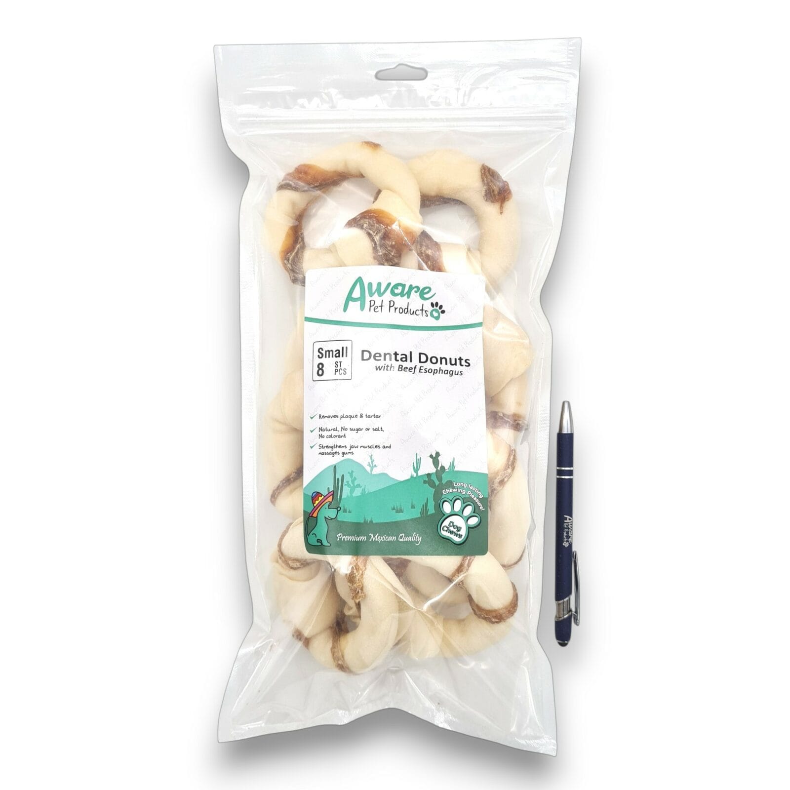 Runderhuid Donuts met slokdarm | Small 9 cm | 8 Stuks Voordeelbundel |