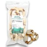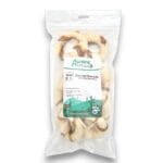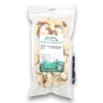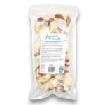 Deze runderhuid donuts met slokdarm zijn een leuke uitdaging voor de hond waar hij of zij zeker van zal genieten. Door de vorm kan je hond er lekker mee spelen door te schuiven, rollen en draaien. Je viervoeter zal eerst proberen de gedroogde slokdarm eraf te trekken en kan daarna nog lekker kauwen op de runderhuid.
