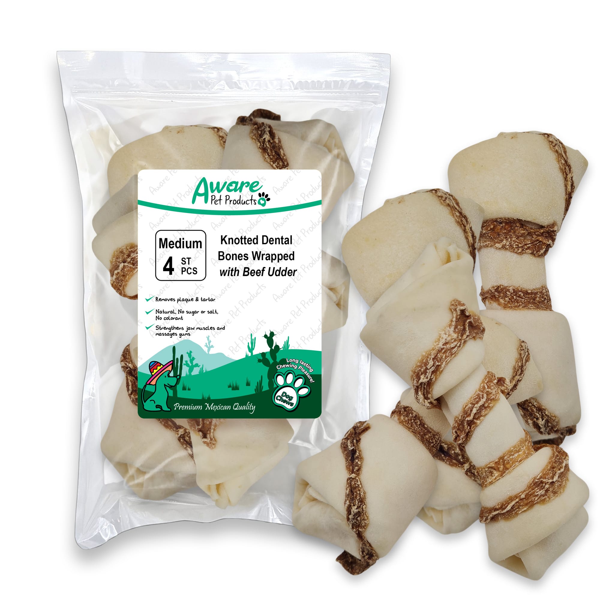 Runderhuid hondenbot met uier omwikkeld – Medium 16,5cm. – 4-pack