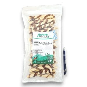 De runderhuid kauwstick is centraal omwikkeld met long hebben we in meerdere varianten. Deze is in het midden omwikkeld met overheerlijke runderlong. Doordat het vlees in het midden stevig tegen elkaar aan gewikkeld zit, is het iets lastiger om het eraf te krijgen dan de stick die over de hele lengte omwikkeld is. Hij is gemaakt van 12,5cm lange runderhuid. Hier zit goede kwaliteit onderhuids bindweefsel in, wat goed is voor de gebitsverzorging van de hond.