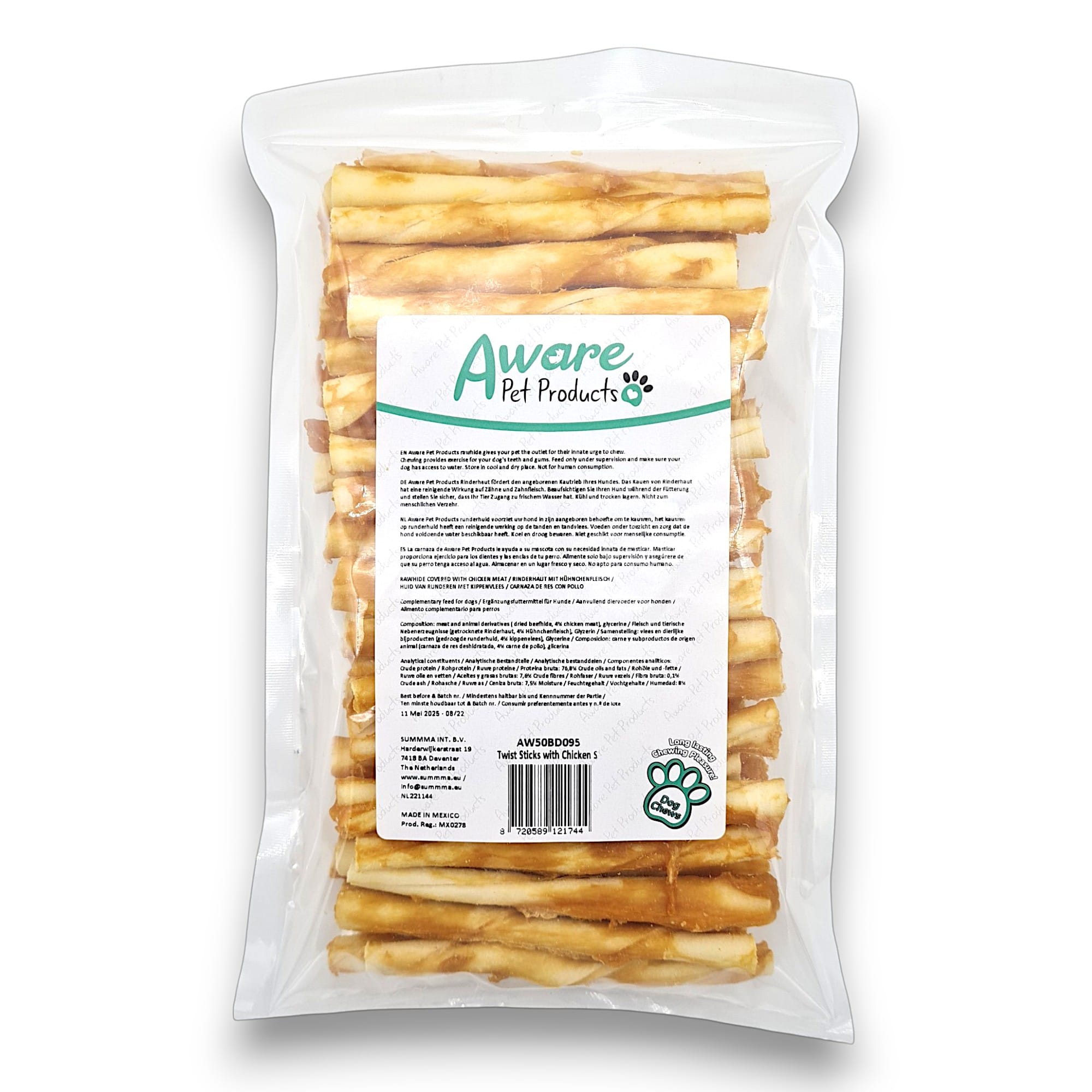 Door hem te omwikkelen met gedroogde kip, combineren we een gezond kauwproduct met overheerlijke smaak. Door de wat kleinere afmeting raden wij hem niet aan voor grote honden, maar wel voor alle kleine en middelgrote honden. Ook voor puppy’s! Doordat kip een vrij toegankelijke smaak heeft, is het ook een goede snack om bij de allerkleinsten mee te beginnen.