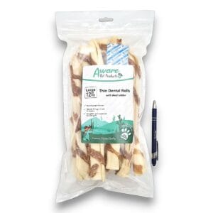 Deze dunne runderhuid hondensnack rol is gemaakt van 100% runderhuid. Hij is geproduceerd zonder kunstmatige geur-, kleur- en smaakstoffen en is volledig zout- en suikervrij.